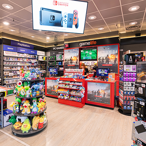 Dai videogiochi ai gadget esclusivi, dalle costruzioni ai giochi da tavolo, i suoi negozi e il suo e-commerce offrono un’esperienza immersiva per tutti gli appassionati.Nei negozi Gamelife trovi un vasto assortimento sempre aggiornato con i migliori brand del mondo dei videogiochi, delle serie TV, del cinema e dei fumetti. Un luogo perfetto per chi cerca il titolo più atteso, un pezzo da collezione introvabile o il regalo ideale per un vero fan.